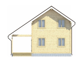 полутораэтажный дом с большой террасой, представленный в проекте 78 компанией «Дачи из бруса», – это сочетание превосходной функциональности и ценовой доступности, предопределивших популярность коттеджа среди владельцев загородных участков и организаторов туристических баз.
