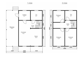 Планировка помещений рациональна и оправдана, что гарантирует удобное расположение небольшой семьи или компании путешественников. Сооружение размером 9х9 м. имеет надежную двускатную крышу, цвет которой владелец может выбрать самостоятельно. Кроме того, компания охотно внесет изменения в первоначальный проект для придания коттеджу особого стиля и дополнительного комфорта.