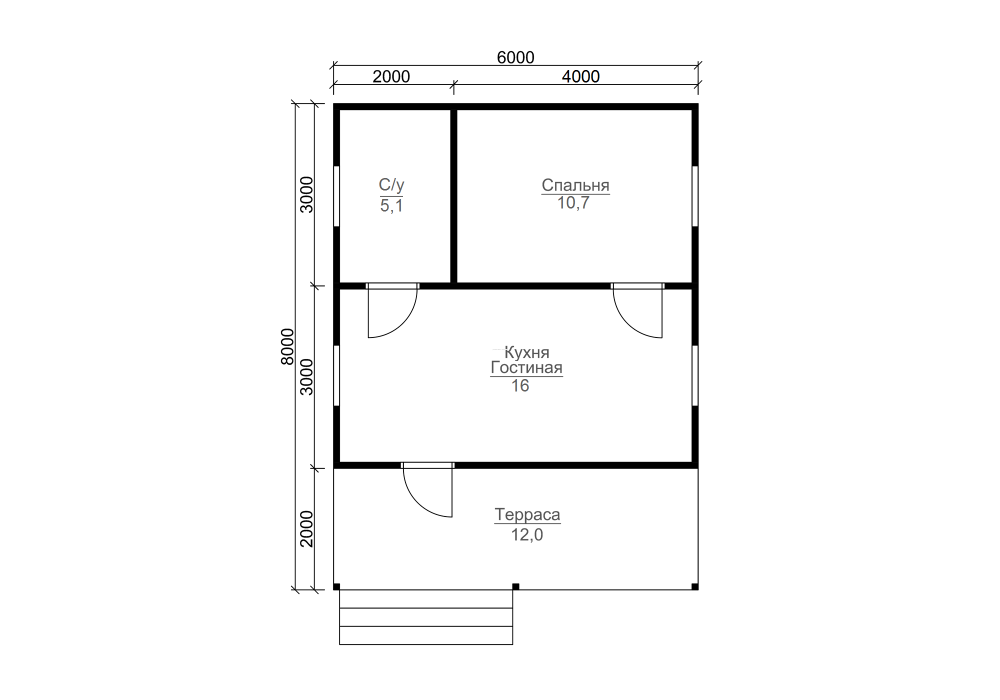 Общая площадь здания составляет 32.8 кв.м., размер дома – 6х8 м.. В доме установлены межкомнатные филенчатые двери (08,x2 м.), которые не только эффектно выглядят внешне, но и отличаются небольшим весом и долговечностью.