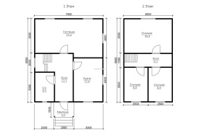 Общая площадь здания составляет 95 кв.м., размер дома – 7х8,5 м.. В доме установлены межкомнатные филенчатые двери (08,x2 м.), которые не только эффектно выглядят внешне, но и отличаются небольшим весом и долговечностью.