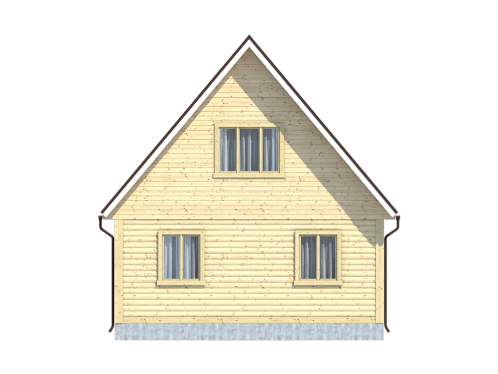 Дом имеет двускатную крышу с ондулиновым покрытием зеленого, коричневого или красного цвета – в зависимости от желания заказчика. Двойные зимние окна обеспечат освещение и циркуляцию воздуха, создадут комфортную атмосферу и микроклимат в доме. Высота потолков первого этажа составляет 2,45 м.